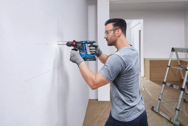 The Bosch GBH 18V-18 X Professional rotary hammer is ideal for professionals such as cabinet installers, carpenters, glaziers, and facility managers working with concrete, wood, and metal. It is the lightest Bosch Professional 18V cordless hammer in the range, yet it delivers full performance with just an 18V 2.0 Ah battery.