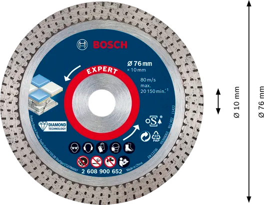 The Bosch EXPERT Hard Ceramic offers the best cutting performance on porcelain tiles. You can be confident of achieving a professional finish on every job with this diamond cutting disc.