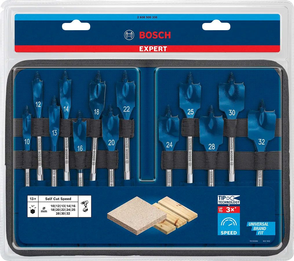 Also being the best choice for use in all types of softwood, the Bosch EXPERT Self Cut Speed flat drill bit offers efficiency and convenience for professionals who need to make holes for cables, pipes, and other hardware installations.