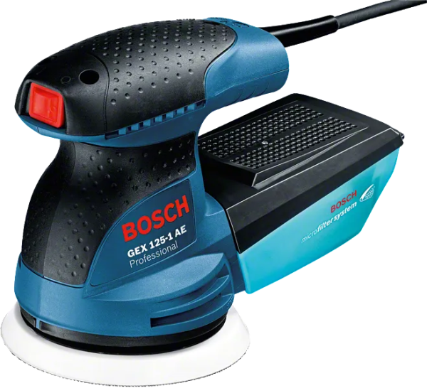 The GEX 125-1 AE Professional is Bosch’s entry-class corded random orbital sander in the 125 mm category, designed for small areas and spot-repair work. Its compact and ergonomic design with multiple grip positions provides excellent comfort, even when working overhead. Pre-selection of speed enables applications across a variety of materials. Its dust box is equipped with an integrated Bosch Microfilter System, delivering efficient dust extraction for virtually dust-free working.